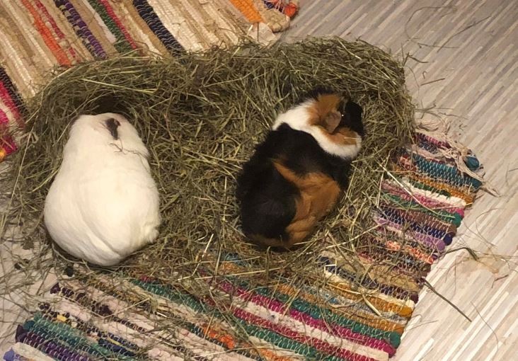 To właśnie dzięki Grubci stado stało się stadem. Ale po kolei. Znaleziona przez SM we wrześniu 2017, trafiła do azb jako tymczas, a stamtąd do mnie, również jako tymczas. W tamtym czasie byłyśmy już bliskie porzucenia marzeń o adoptowaniu koleżanki do Vii i Vendetty. Podejmowałyśmy próby, różne kandydatki były testowane, ale Białe nie życzyły sobie żadnych nowych świnek w domu.